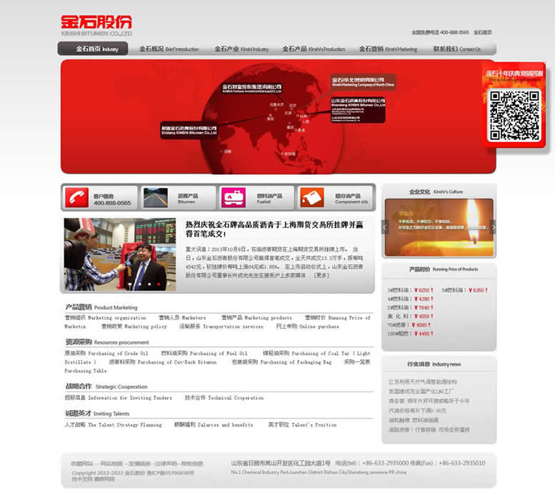 山东金石沥青股份有限公司(简称山东公司),是由金石财富联合产业优势资本共同组建的拟上市公司,成立于2009年12月30日,坐落于山东省日照市岚山区化工园区大道1号,注册资金4.622亿元人民币,法定代表人叶成光先生。公司主营高品质沥青的研发、生产、加工、销售,主要产品有重交道路沥青、SBS改性沥青、SBR改性沥青、橡胶改性沥青、机场跑道沥青、高铁乳化沥青、特种沥青共7大系列、数十个规格的沥青产品,辅助产品有燃料油及化工原料。为增强企业的经营能量,山东公司先后成立了四家直属公司,分别为:营销板块的山东金石沥青销售有限公司;资源板块的中华石油产业有限公司(新加坡);资金板块的中国金石产业有限公司(香港);物流板块的山东金石危化品运输有限公司。